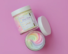 Our Unicorn Dreams Whipped Body Butter is made with all natural ingredients such as coconut oil, coco butter, shea butter, and vitamin E.