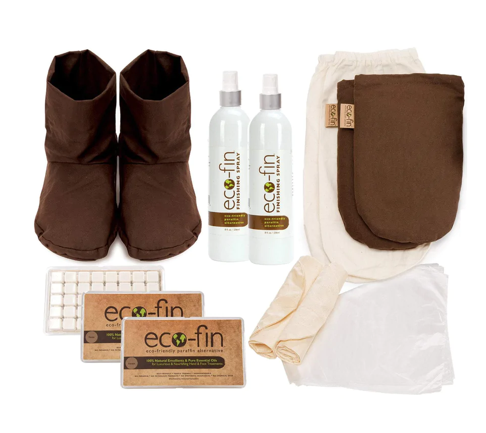 Eco-fin® Luxury Hand and Foot Paraffin Alternative Kit. The unique pre-measured cubes are sanitary, easy to use, and provide a rich, emollient alternative to paraffin treatments. No petroleum, artificial dyes, or synthetic fragrances. PETA Beauty Without Bunnies certified.