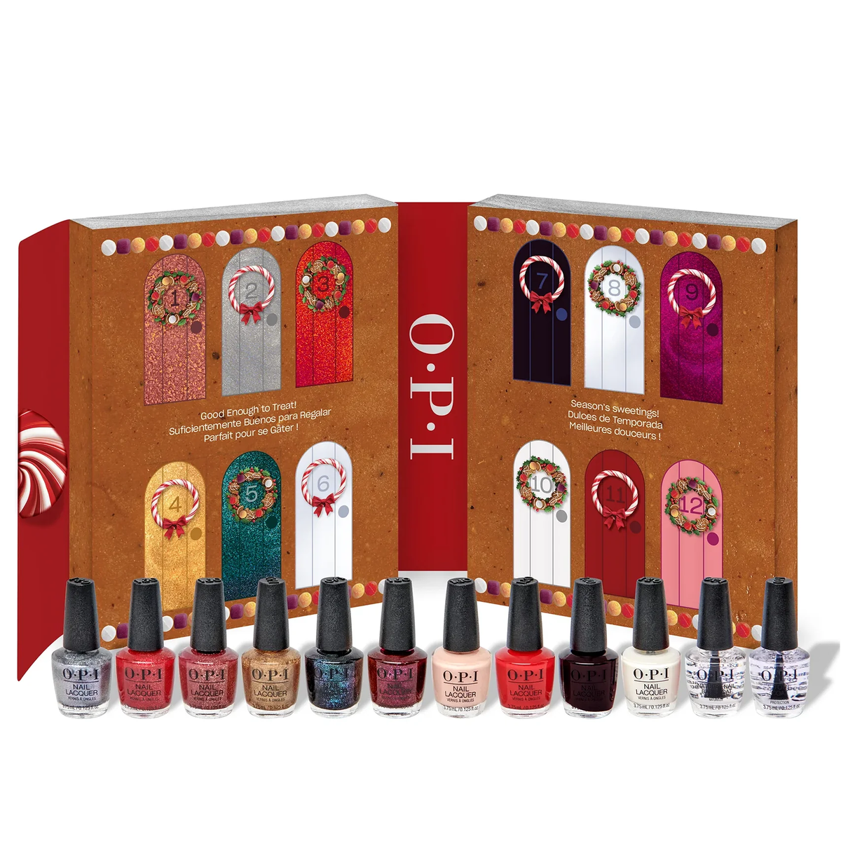 Welcome to the House of OPI! Take a stroll down candy lane to celebrate the 12 days of candymas. Our decadent advent calendar features mini (but majorly sweet) Nail Lacquers behind every door including: