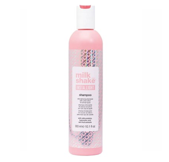 milk_shake insta.light shampoo is a strengthening shampoo with a filler effect for all hair types. It gently cleanses and makes hair easy to comb, leaving it soft and shiny. Formulated with fruit extracts that provide vitamins and precious minerals, giving elasticity and making the hair stronger. The creamy texture, combined with the irresistible peach fragrance, makes this shampoo an enjoyable experience at the backbar.